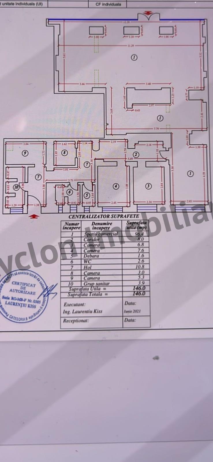 Inchiriere spatiu comercial stradal 150 mp cu vitrina de 16 ml, camera 96 mp, alte spatii mai mici, 2 grupuri sanitare, holuri, calorifere din aluminiu.