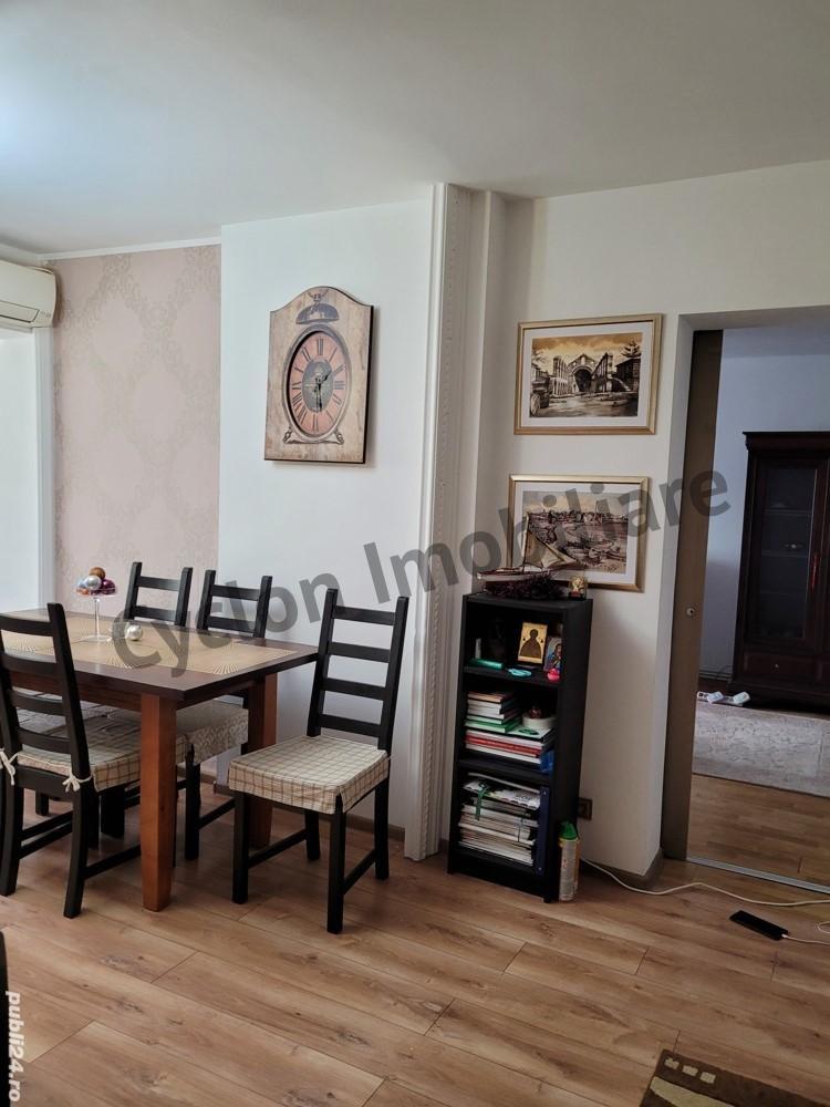 Apartament 2 camere, et 1/4 suprafata 50 mp, renovat, centrala termica, contorizat, revizii facute la zi, instalatii curent, conducte apa inlocuite, mobilat si utilat Mobexpert, modificare intre hol intrare si bucatarie, balcon la bucatarie, scara foarte curata, vedere pe 2 laturi ale blocului, blocul este izolat termic, parcare ADP