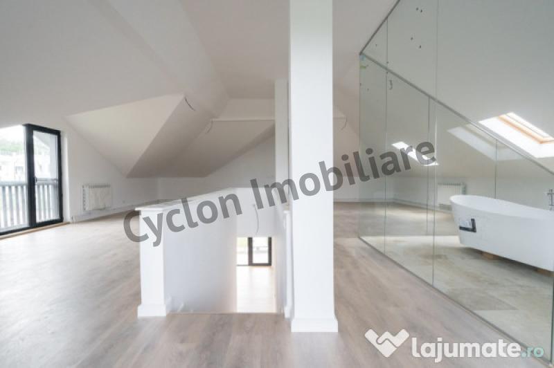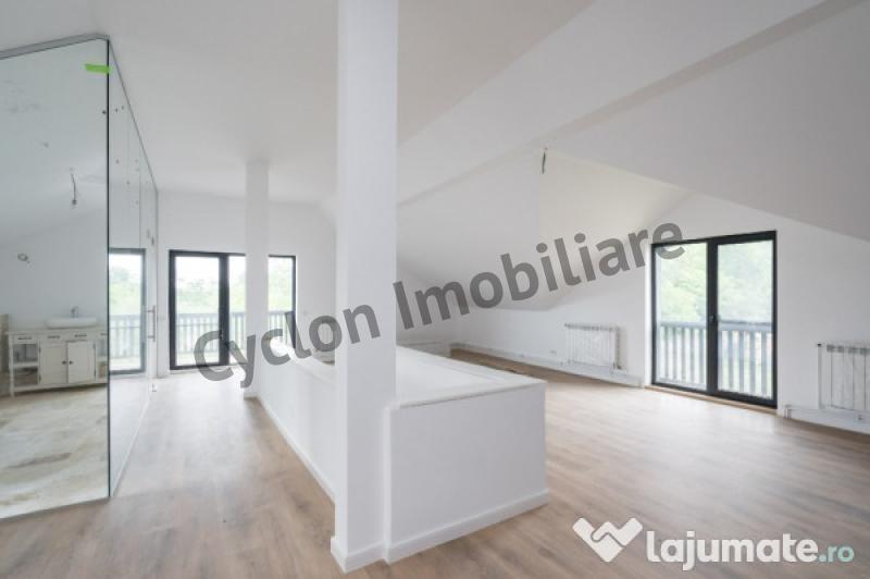 Spatiul dispune de ferestre mari si o terasa , ferestre velux si o priveliste superba catre padure si Manastirea Carmelita