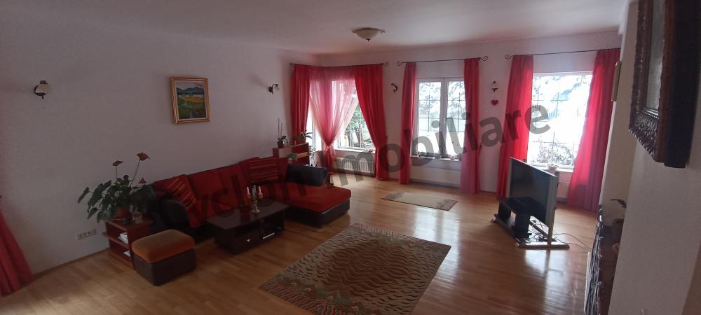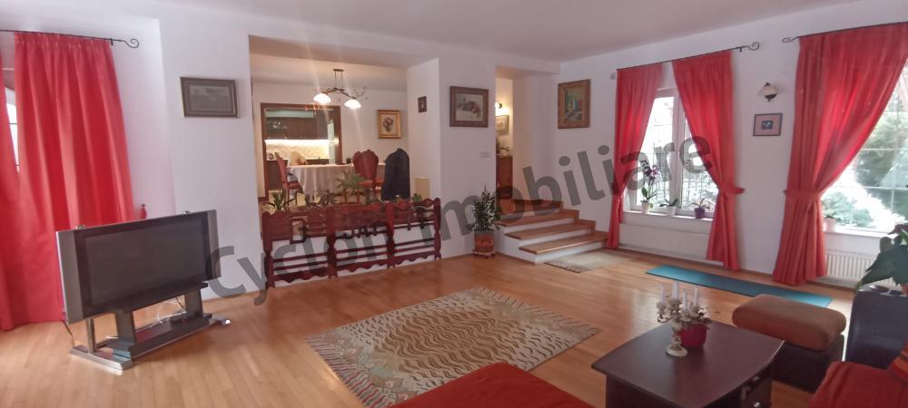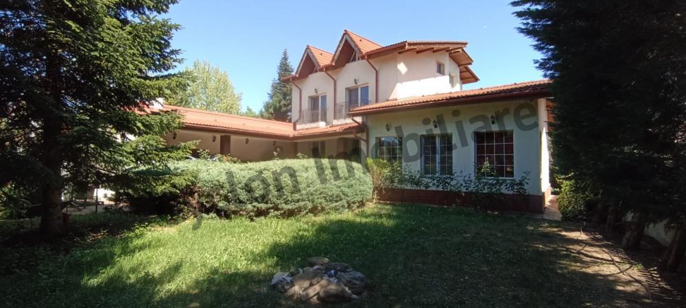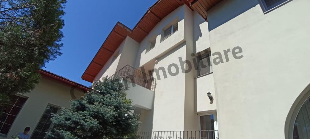 Vila spatioasa D+P+1+M compusa din 11 camere,bucatarie generoasa si living 45 mp cu iesire pe terasa si gradina,5 bai,holuri,casa scarii,centrala pe gaze,acoperita cu tigla,doua garaje plus 4 locuri de parcare in curte,parchet,scari,balustrada si usi din lemn masiv.