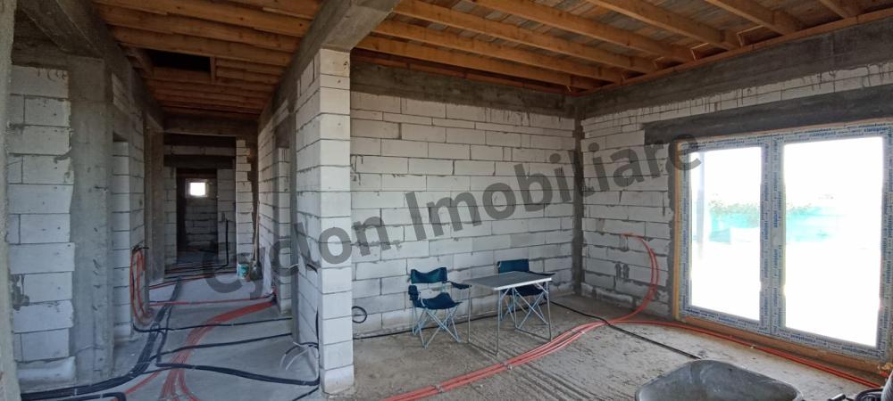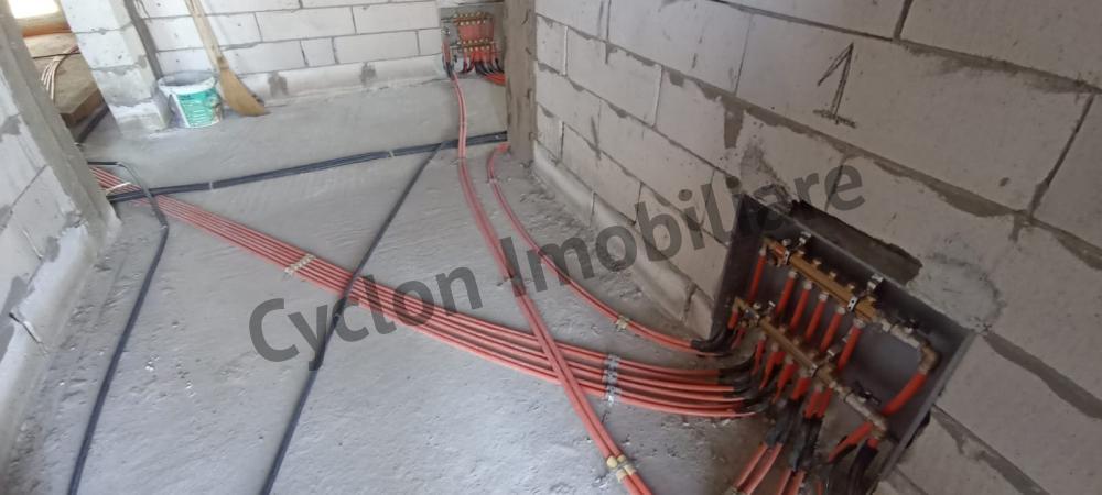 Interior: Instalațiile electrice și sanitare sunt deja trase, iar urmează turnarea șapei la pardoseală.
