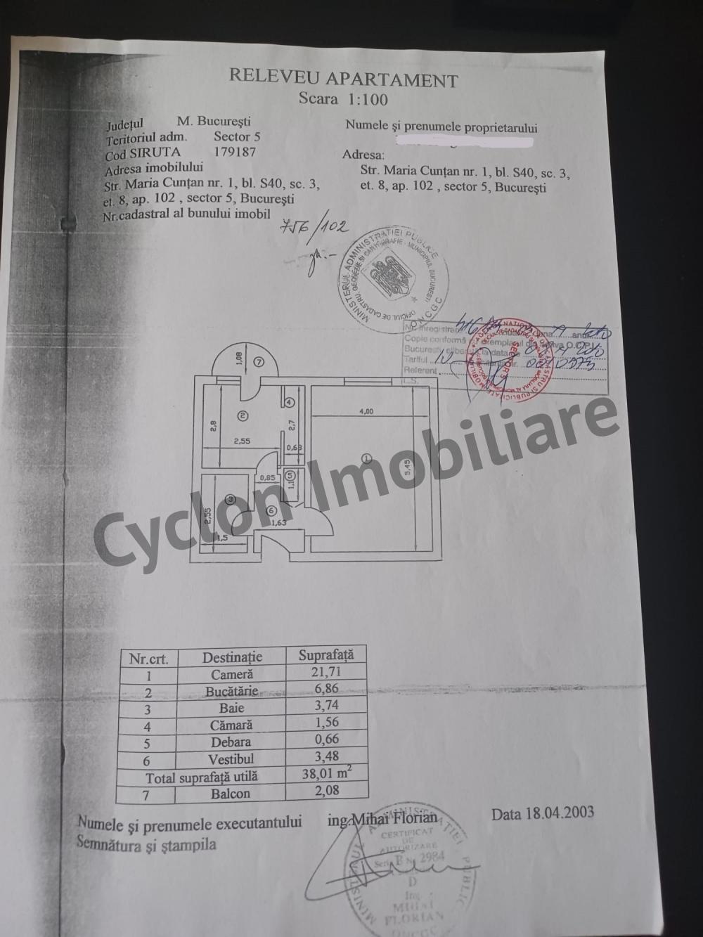 Cyclon Imobiliare va ofera spre Vanzare Garsoniera 13 Septembrie Bucuresti Sector 5
