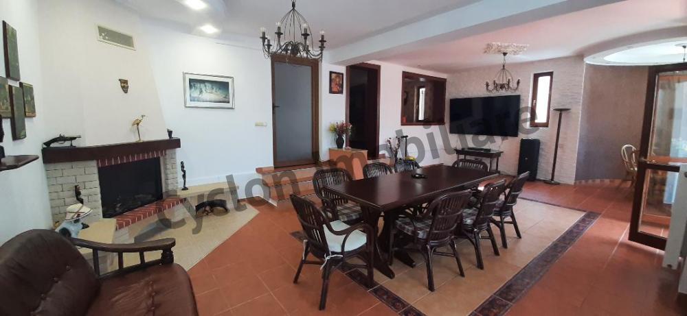 Vila are 7 camere cu baie fiecare, living 60 mp, doua bucatarii, camera depozitare, sala de biliard, terasa in consola pe sine de tren cu panorama unica catre Muntii Bucegi, casa scarii, holuri si receptie, foisor mare cu gratar natural, foisor de luat masa, parau prin curte cu iaz, garaj, monitorizare video, sistem antiefractie, iar semineul din living este piesa de rezistenta.